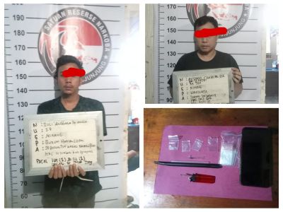 Selanjutnya dilakukan penggeledahan terhadap pelaku ditemukan 1 (satu) unit Handphone Merk Xiaomi warna hitam putih hitam, 1 (satu) unit Handphone Merk Oppo warna biru hitam, dan 1 (satu) bungkus plastik klip bening yang di duga berisikan Narkotika jenis Sabu.
