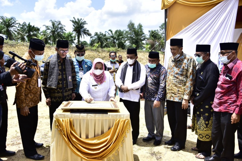 Peresmian tersebut ditandai dengan pembukaan selubung nama dan penandatangan prasasti serta penekanan tombol sirine oleh Bupati Bengkalis Kasmarni bersama Wakil Bupati Padang Pariaman Drs. Ramang dan Wakil Ketua DPRD Bengkalis Syaiful Ardi.