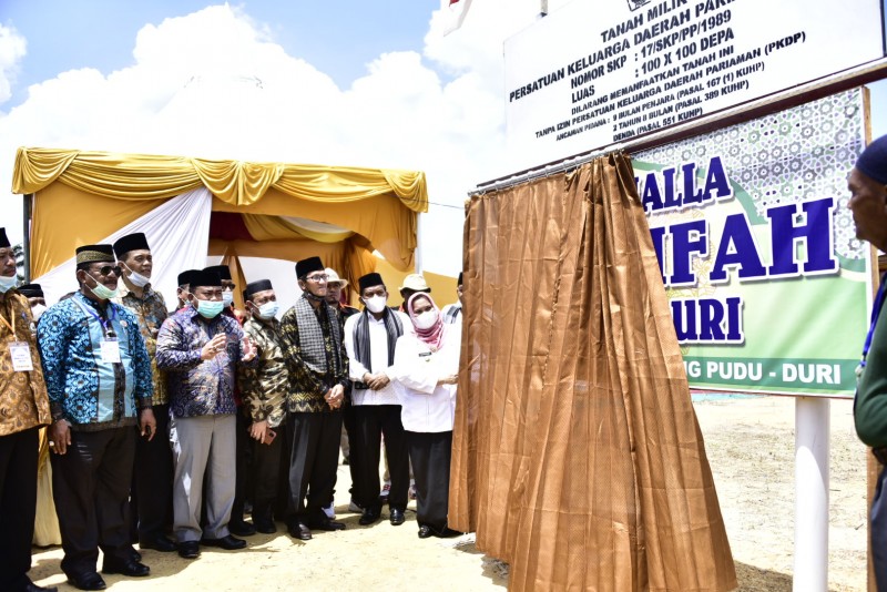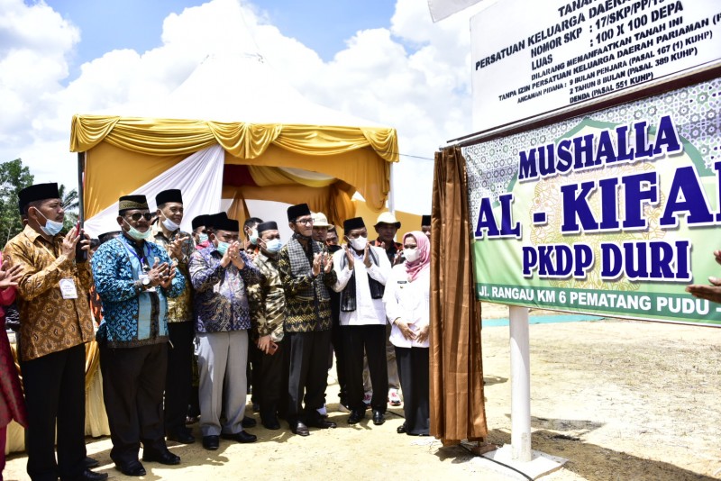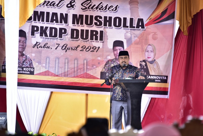 BENGKALISNEWS - Wakil Ketua DPRD Bengkalis Syaiful Ardi menghadiri peresmian Mushalla Al-Kiffah Baralek Batagak Kudo-Kudo Mushalla Persatuan Keluarga Daerah Pariaman (PKDP) Duri, Rabu (7/4/2021).