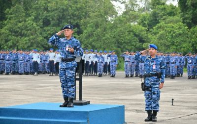 BENGKALISNEWS | SIAK KECIL - Camat Siak Kecil Syahnan Ady Kusuma pimpin upacara HUT RI ke- 77 Kecamatan Siak Kecil yang digelar di Lapangan Upacara, Kantor Camat Siak Kecil, Kabupaten Bengkalis, Rabu (17/8/22).
