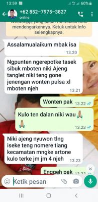 "Dia terus minta tolong agar bantuan untuk panti asuhan yang sudah terkirim ke rekening masjid itu di tranfer balik ke nomor rekening yang dikirimnya ke saya. Kebetulan di rekening saya ada simpanan untuk biaya kuliah anak saya sebesar Rp.48 juta. Sementara jumlah yang harus ditranfer untuk panti asuah itu sebesar Rp.60 juta.